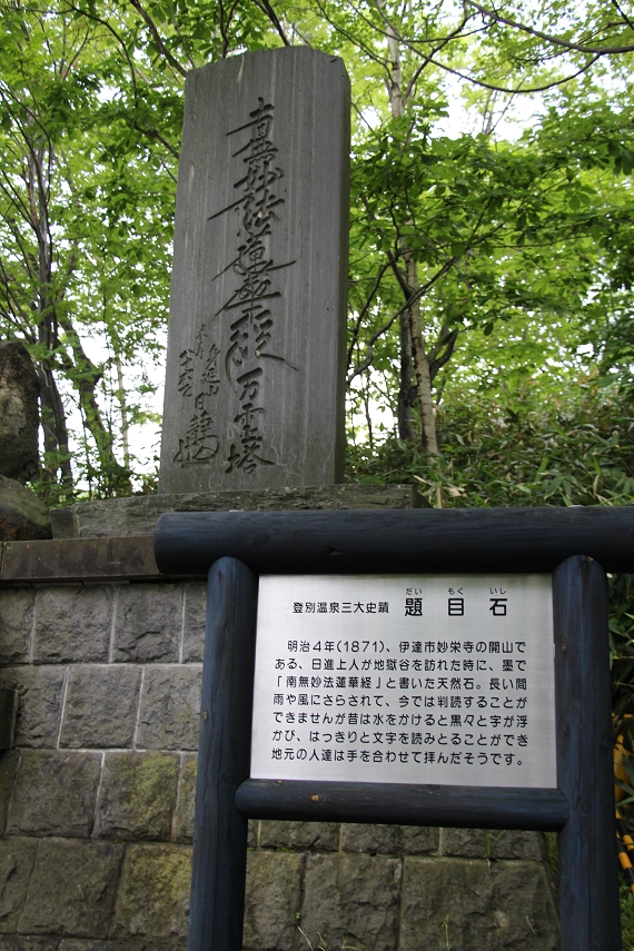 趕緊從網上抓了圖片補充...他的對面還有個 登別三大史蹟"題目石"